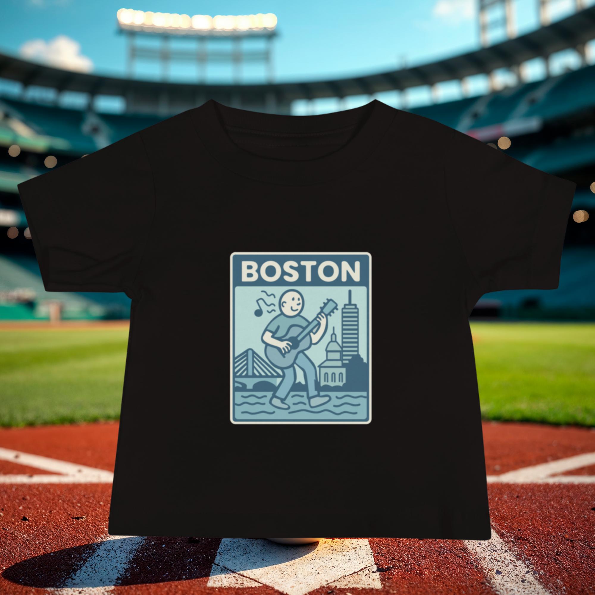 The Boston Music graphic has a vintage, slightly worn-in look — like a beloved concert T-shirt from a show that hasn’t happened yet, but will. It’s understated and proud, and it’s sure to spark a smile from locals who know the city’s soundtrack runs deep. Whether you’re taking a family stroll through the Public Garden, attending a Red Sox game, or experiencing baby-sized performances, this tee is ready. Place your order now!